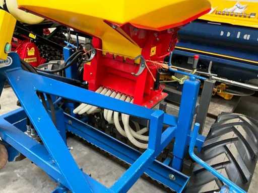 Wyposażony w szerokość roboczą 1500-1800 mm, połączenie trzypunktowe, koła z regulacją wysokości, 2x regulowany poziom ostrza, 8x wylot, elektryczną pneumatyczną tacę na siewa, regulację dawkowania, jednostkę wykręcającą do wykończenia, dokumentację, płaskoczynę stołu o szerokości roboczej 1500 mm i można ją łatwo poszerzyć do 1800 mm przy drobnych korektach