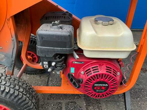 Wyposażony w silnik benzynowy Honda GX200 o mocy 6,5 KM, mobilne podwozie, otwór wejściowy 190 x 250 mm, wysokość wjazdu 750 mm.