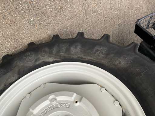 Przednia rama ładowarki, zawieszona kabina, hamulce pneumatyczne, hydrauliczny zawór hamulca samochodu, drążek pick-up, top link, klimatyzacja, 540/540e/1000 rpm, szerokość rozstawu 1640mm, 4x 50kg masa kól, 540/540e/1000 rpm