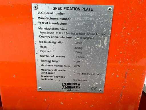 2020 JLG Power Towers Ecolift Winda Pasażerska