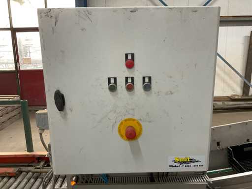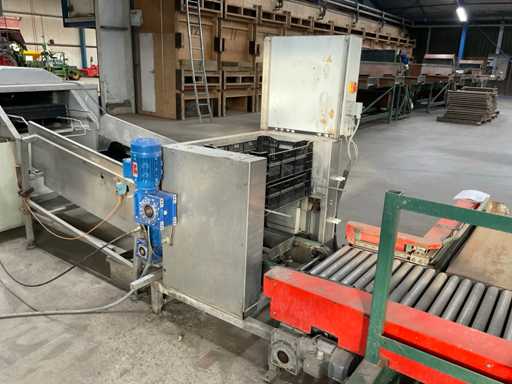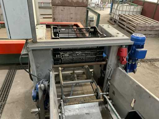 Paletizer Smit dla skrzyń o wymiarach 60x40 cm, a następnie narożny układ Potveera z pchaczem i podwoziem dla palet 120x120 cm
