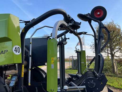 wyposażony w komorę bel z systemem rolkowym, bele ø ok. 1,25 m, szerokość beli ok. 1,20 m, urządzenie do cięcia RotoCut, do 25 noży (hydraulicznie wyjmowanych), dostępne 39 noży, wiązanie siatką i folią, automatyczne wiązanie siecią, podwójny owijacz satelitarny, terminal Claas Communicator / ISOBUS, kamerę, hydraulicznie sterowany stół do owijania, opony 620/55R26.5, roleki ciśniące swate, hamowanie pneumatyczne, kołowrotka powietrzna z pistoletem natryskowym, automatyczne smarowanie, automatyczny system smarowania łańcucha, wywrotkę bel, Skrzynka narzędziowa, hydrauliczny podnośnik rolki foliowej, szczegółowe informacje można znaleźć w załączniku