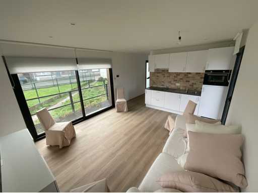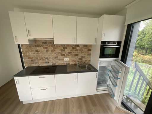 -2nd bedroom / office -open living room with kitchen unit in which the appliances are built in brand ATAG (oven, hob, extractor hood, refrigerator)