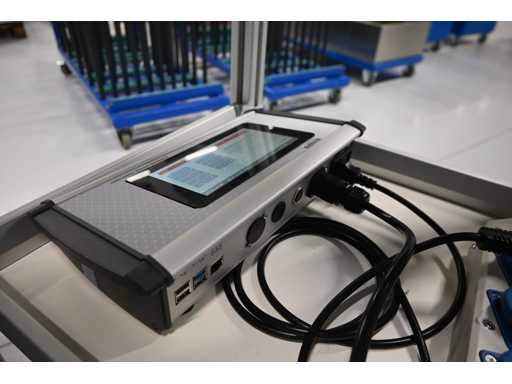 Zawiera kontroler kurczliwy podczerwieni Komax Exmore oraz aluminiowy wózek magazynowy Rimas, wymiary są w przybliżeniu. L50 x W50 x H112 cm.