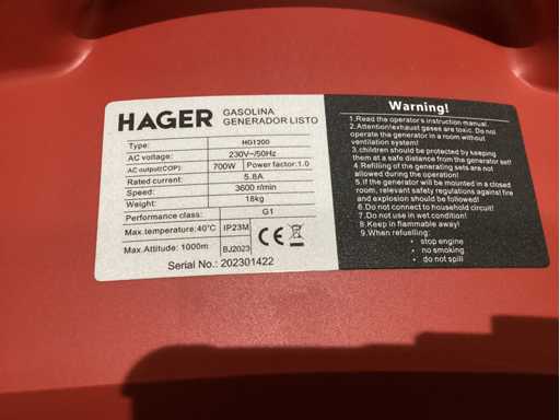 2024 HAGER HG 1200 Awaryjny generator prądu
