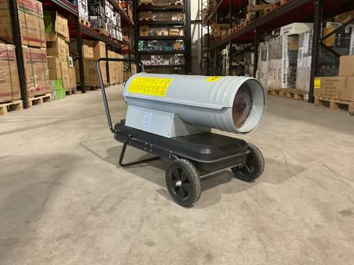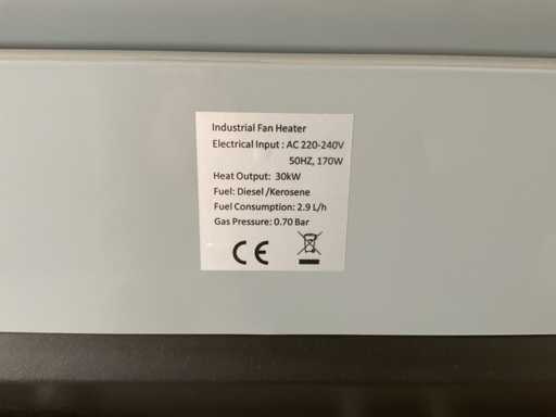 Wyposażona w moc: 30kW; Pojemność.: 105000.00BTU/godz.; Paliwo: Diesl; wyposażona w 2 koła; Nieużywane w pudełku (wymiary transportowe opakowania 790x340x440 mm lxwxh, waga 18,5 kg)
