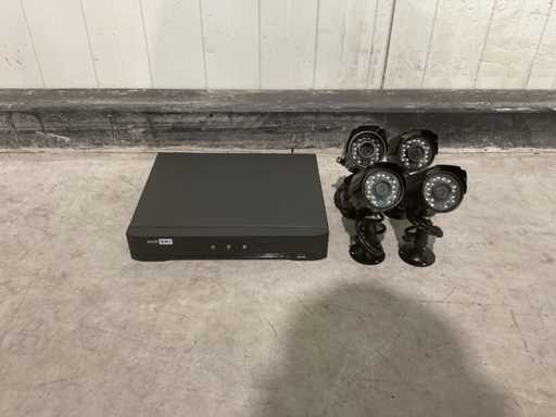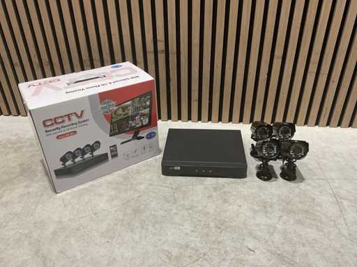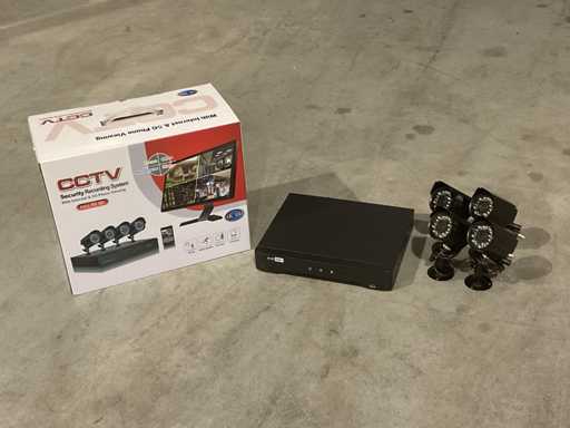 Wyposażony w 4 kamery; czujnik ruchu; Rejestrator cyfrowy; Rozdzielczość VGA 1280X1024; 4 10mtr; 2 x zasilacz; 1 x myszka; 2 x porty USB; 1 x gniazdo dysku twardego SATA; Przyłącze sieciowe RJ45; Prąd stały 12V; wejście wideo: 4-kanałowe BNC; Wyjście wideo: 1x VGA, 1x CVBS, 1x HDMI; Wejście audio: 2-kanałowe RCA; Wyjście audio: 1-kanałowe RCA; Obiektyw 3,6 mm; Kąt widzenia: 60 stopni; Noktowizor: LED IR, zasięg 15M; Nieużywany w pudełku