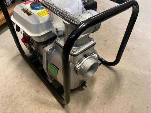Pompa wody z silnikiem benzynowym, osiągająca 60 metrów sześciennych na godzinę, Rura dolotowa 80 mm całkowita masa wynosi 27 kilogramów, Silnik benzynowy, maksymalna wysokość 7 metrów LxWxH=500x395x410 mm