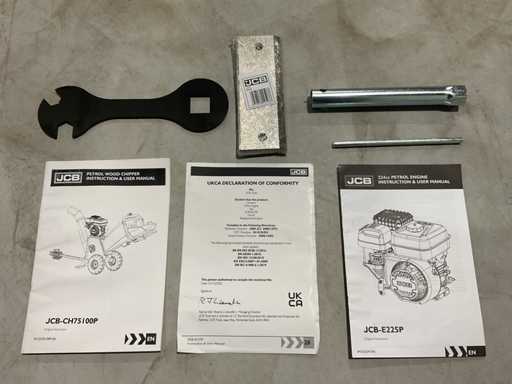 Wyposażony w 224cc czterosuwowy silnik JCB o mocy 7,5 KM; obracająca się rowina o 360°; opony pneumatyczne o średnicy 368 mm; wbudowany drążek holowny; przycisk wyłączający zabezpieczenie; Zdolność niszczenia 100 mm; otwór wlotowy o wymiarach 148 x 223 mm; Zbiornik paliwa 3,6L; silnik 600cc; 600ml zbiornik oleju; 2800 obr./min obrót łopat; Nieużywane w pudełku