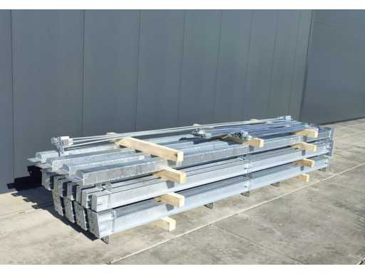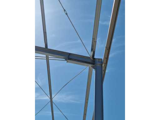 nieużywana konstrukcja stalowa; stal ocynkowana; ocynkowane liść; podkonstrukcja IPE 160; konstrukcja składa się z pionowych i kratownic; w tym usztywnienia/usztywnienia; magazyn jest przygotowany do transportu