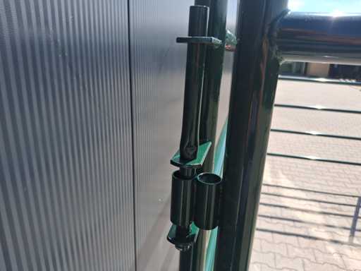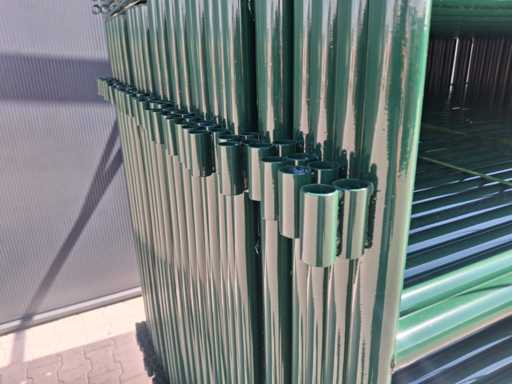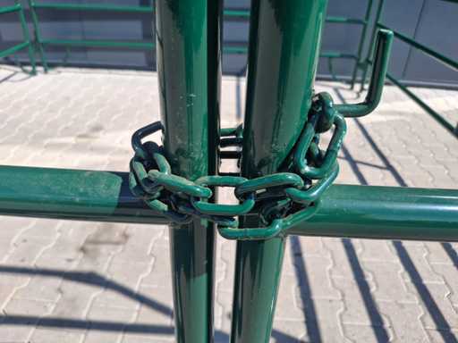 Wyposażony w 54 ogrodzenia; wymiary ogrodzenia: 305 cm szerokości, 152,5 cm wysokości; 2 bramy z bramkami; Nieużywane
