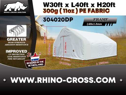 2025 Rhino-Cross-Shelter 304020DP - Namiot magazynowy 12,2x9,15x6,1 m