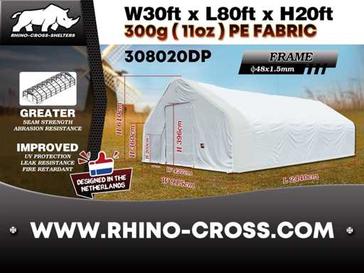 2025 Rhino-Cross-Shelter 308020DP - 24,4x9,15x6,1 m Namiot magazynowy / Namiot magazynowy