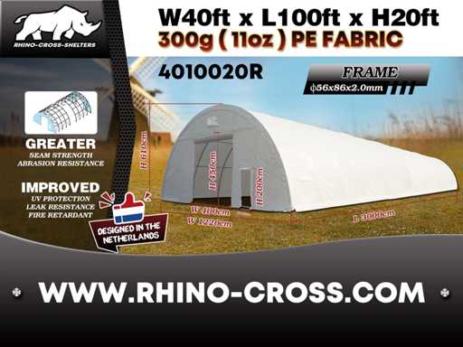 2025 Rhino-Cross-Shelter 4010020R 30x12,2x6,1 m Namiot magazynowy
