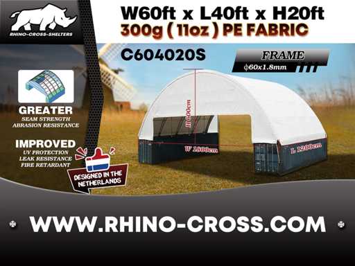 2025 Rhino-Cross-Shelter C604020S 12x18x6m Namiot magazynowy / Namiot magazynowy między 2 kontenerami