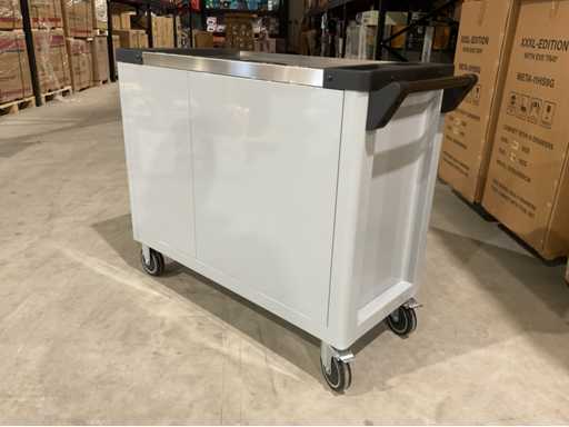 Wyposażony w 7 szuflad, z których 7 wypełnionych jest narzędziami; drzwi boczne; profesjonalne narzędzia chromowo-wanadowe; wózek narzędziowy o dużej wytrzymałości; 4 koła; solidny uchwyt; Nieużywany w pudełku (wymiary transportowe 110x50x80 cm)