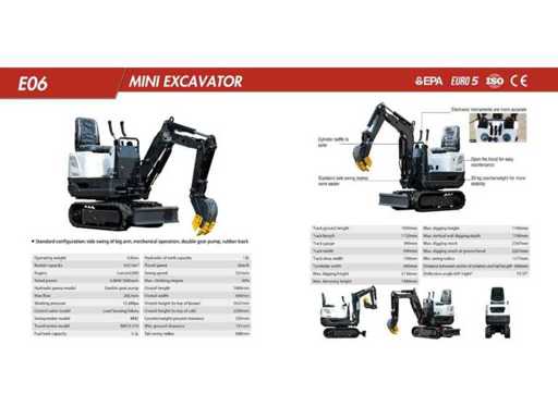 2 year warranty (both for business and private buyers) given by the seller himself! so no anonymous import — seller is effectively available after sales for service and follow-up - Delivery possible at home and abroad; price to be discussed - Additional accessories and attachments available separately (e.g. additional buckets, auger, hammer, grapple,...) - Professional compact crawler excavator, production 11/2025, unused and fully operational. Its narrow construction (±70 cm) makes it ideal for gardening projects, renovations, urban construction sites and places with limited passage — can pass through standard gates and many interior doors.