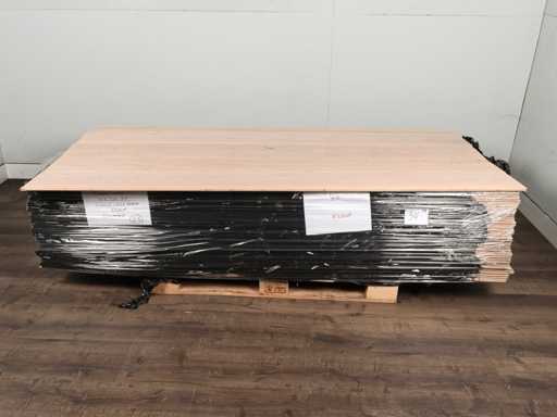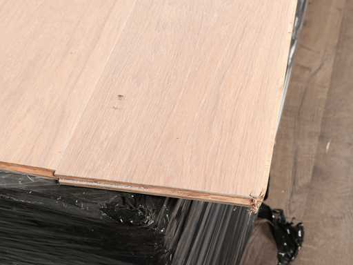 Easy to lay due to tongue and groove system, suitable for all types of floor and cooling heaters, contains short and long planks, floor is made of European oak wood, ready-to-use treated, note floor is unpackaged contains loose planks, thickness 15 mm, top layer 3 mm, 1 pallet of 50 m2