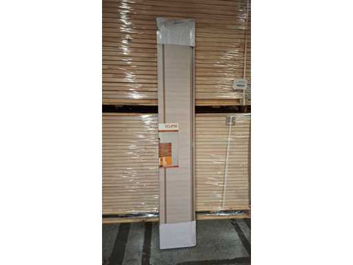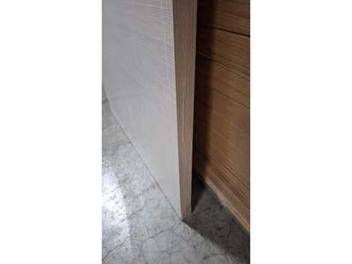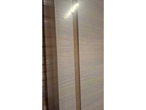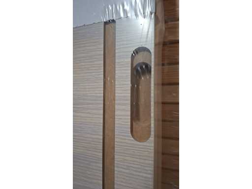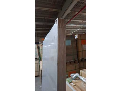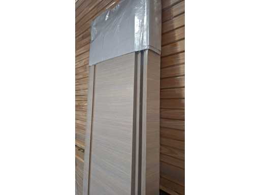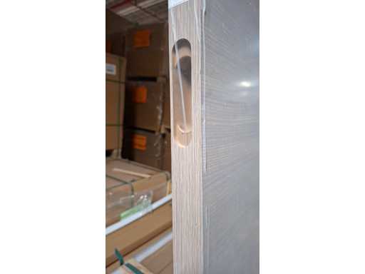 Finished door and frame with white oak motif. Sleek look due to the hidden hinges. Easy to install and easy to maintain. Equipped with magnetic lock and 3D hinges. These are reversible doors.