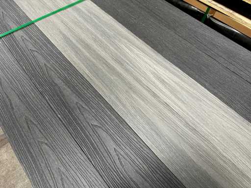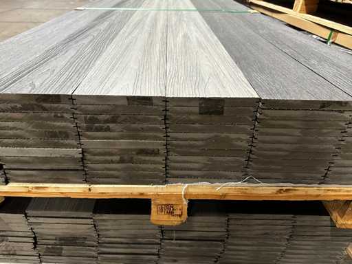 66 kawałków solidnych kompozytowych desek tarasowych z warstwą współwytłaczania o głębokim usłojeniu drewna. Kolor antracytowy/szary, nieużywany.