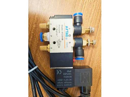 Marka: Airtac Model: 4V210-08 Ciśnienie robocze: 1,5–8 kgf/cm 2 Napięcie robocze: 220V AC (187V–253V AC) Moc: 5,5 VA Klasa ochrony: IP65 Stan zdrowia: Nowy Ilość: 25
