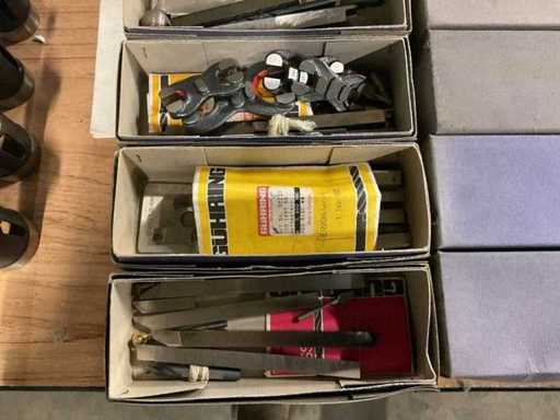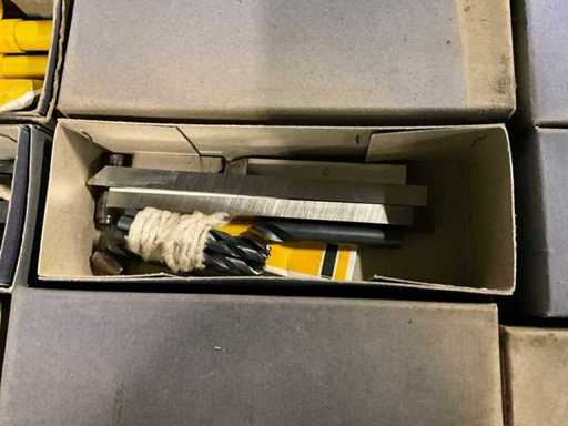 W tym wiertarki, dłuta i różne rzeczy, łącznie w 56 pudełkach; Różne rozmiary, marki i materiały