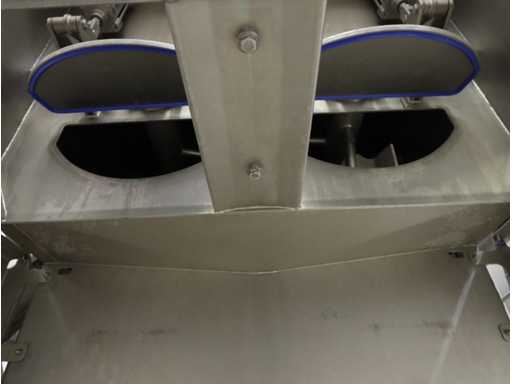 Pojemność miksu 1700x1050x900 mm, wyposażona w górny wlot z zaworem pneumatycznym, dolny wylot z pneumatycznymi zaworami zpustowymi, cyfrowy odczyt, standardowe podnoszenie pojemnika z jednostką wagową,
