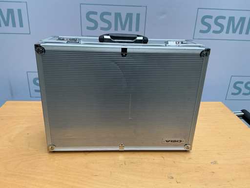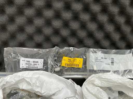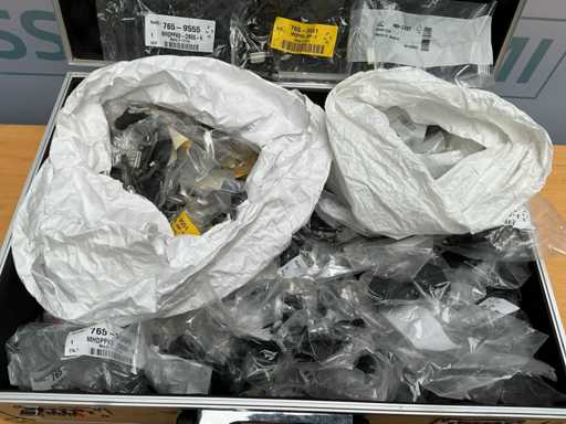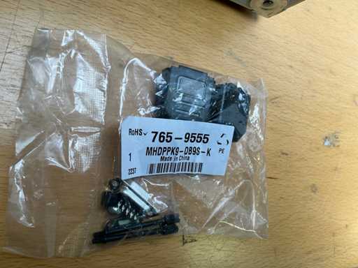 Złącza o numerach typu 765-9555 (MH Connectors do 9-punktowej obudowy D-Sub), 765-9551, 409-3337 (złącze firmy TE Connectivity z serii AMPLIMITE: 9-pozycyjne, gniazdowe / żeńskie). W poręcznej aluminiowej walizce narzędziowej OSIA z nieużywanymi zamkami szyfrowymi.