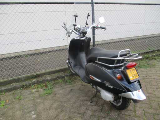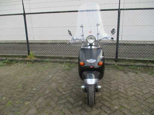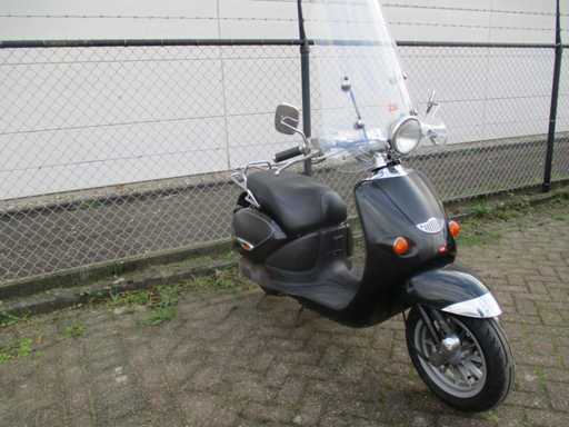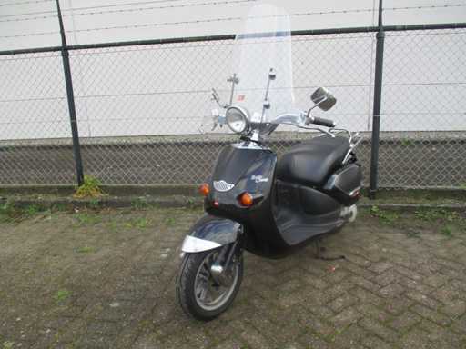 Skuter z dwoma kluczami, w tym bagażnik z tyłu i wysoką szybą. Skuter stoi nieruchomo od jakiegoś czasu, kompresja jest normalna, a końcowa skrzynia biegów ma szumy! Dalsze informacje techniczne i operacyjne nieznane.