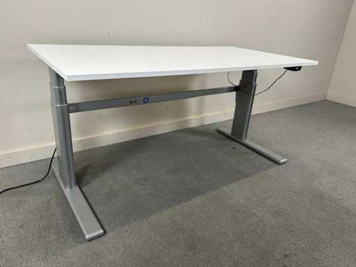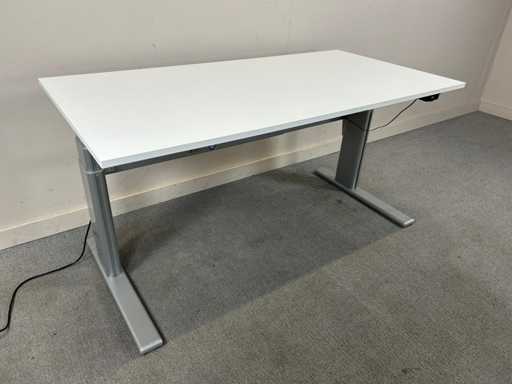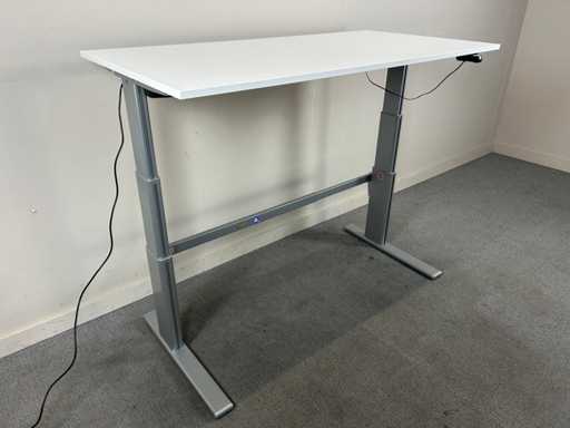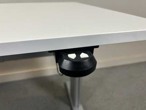 Wysokiej jakości elektryczne biurko do siedzenia/stojącego od Artiforce, wyposażone w elegancką białą blat roboczy i stabilną metalową podstawę w kształcie szarej nogi T-leg. Elektrycznie regulowany wysokości, idealny do ergonomicznej pracy w biurze lub domowym biurze.