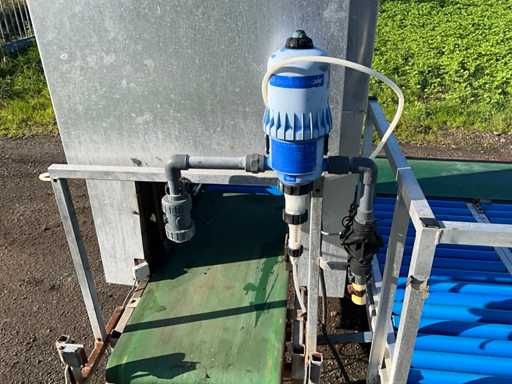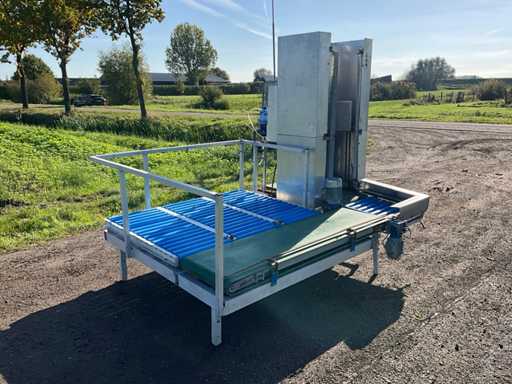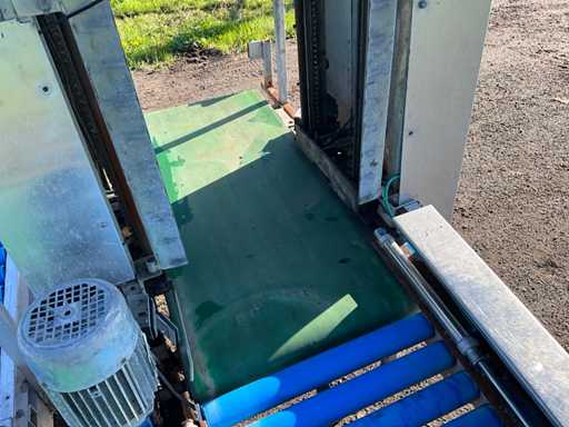 Wtyczka 400V 16A 5-pin, przenośnik rolkowy z ramieniem pneumatycznym, dźwig elektryczny i dosatronic, przenośnik taśmowy o szerokości 470mm, sztaplarka pneumatyczna, przenośniki rolkowe z odłączonym przenośnikiem taśmowym