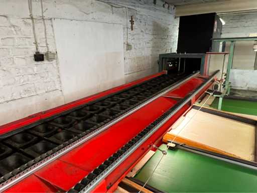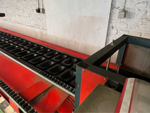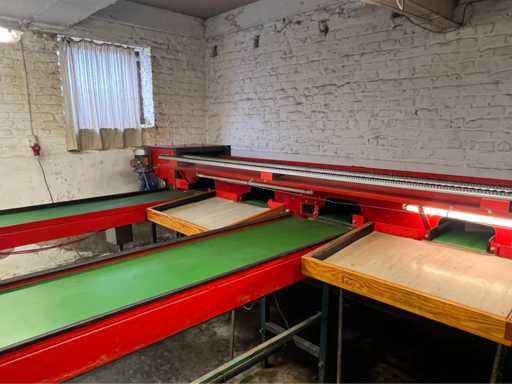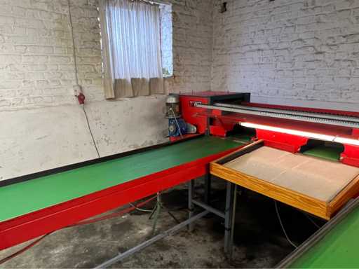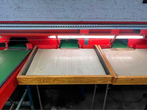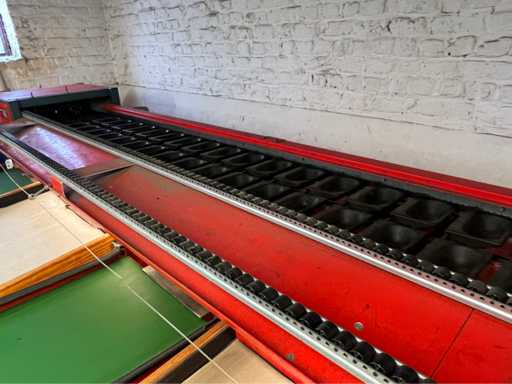 wyposażony w sortowanie kamerą; 8x pasy z wylewką; taśma podająca z regulacją prędkości; drewniany stół; 4x stół do czytania z czujnikami (różne rozmiary;