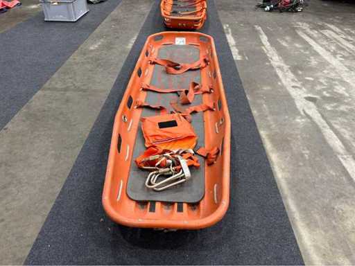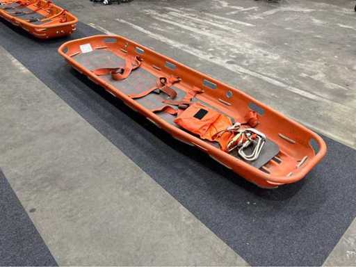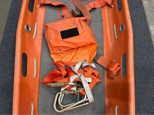 Robust basket stretcher for height and depth rescue. Complete with 4-fold sling harness, ideal for fire brigade, mountain rescue or industrial rescue. Condition used, ready for use. Model designation not clear, but corresponds to common systems.