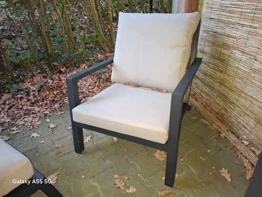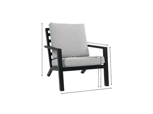 Fotel Bezano oferuje idealne połączenie luksusowego wyglądu i komfortu wysokich miejsc siedzących. Dzięki głębokiemu siedzeniu i 10-centymetrowym, kremowym poduszkom do relaksu jest gwarantowane. Trwała aluminiowa rama z matową powłoką proszkową zapewnia nowoczesny i ponadczasowy design.
