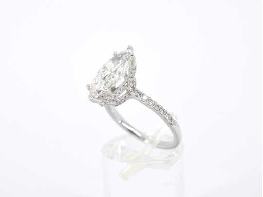 Biały srebrny pasjans pierścionek, diament markizy 2,00 karatu ukryty