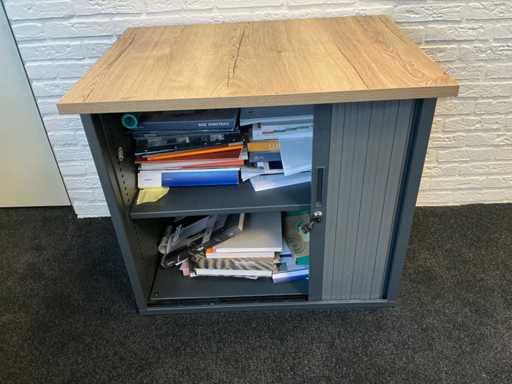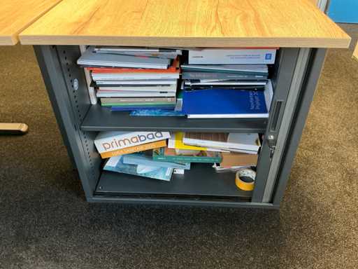 wyposażona w 2 szafki z drzwiami przesuwnymi z zawartością oraz 2x ekran HP24".