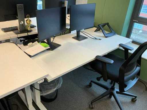 Maksymalna wysokość biurka 120 cm. 4x krzesło biurowe Wilkhahn, 1x ściana działowa 160x140cm
