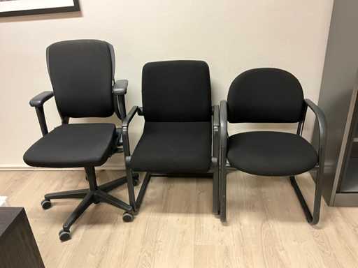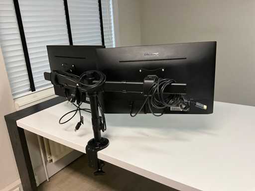 Zawiera 3 krzesła i 2 monitory Philips na statywie