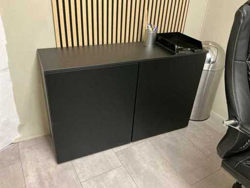 Z krzesłem biurowym. Kredens o wymiarach 120x38x75cm (2x drzwi bez uchwytów). Z treścią składającą się z materiałów reklamowych. Wyposażony w monitor HP2311x.