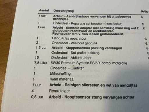 Ten parking posiada rejestrację (tablicę rejestracyjną), a przy odbiorze pojazdu kupujący musi zadbać o transfer lub eksport pojazdu zarejestrowanego w Holandii. Nie zawsze jest to możliwe w miejscu odbioru i musi być wykonane przez stronę trzecią. Istnieją dodatkowe koszty, które nie są uwzględnione w przetargu.