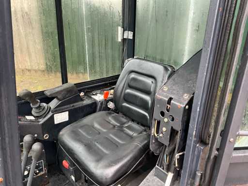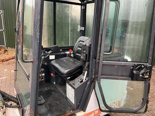 Wyposażony w 3-Cil. silnik diesla "Kubota"; hydrauliczny szybkosprężyn; przesuwana deska; wysięgnik obrotowy; w tym łącznie 3 łyżki koparki;