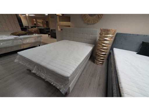 To dotyczy 1 Boxspring 160x200 cm - Kolor beżowy - W tym topper (6 cm) - Feathered box - materace Cooltouch z zimną pianką wierzchnią - Również tapicerowane, prane pokrowce