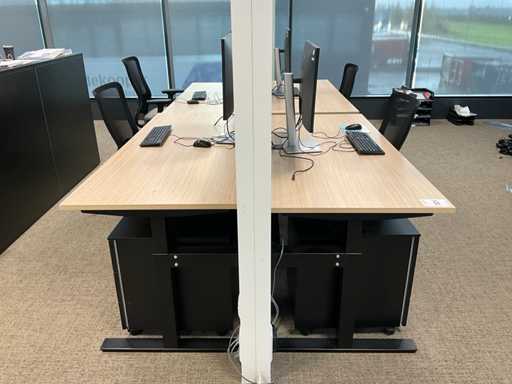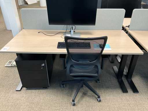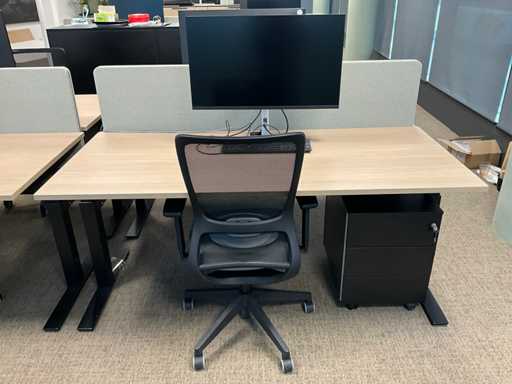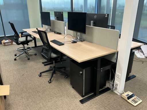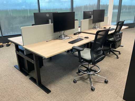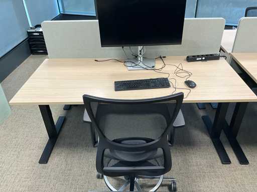 Rozmiar arkusza: 180x80 cm. Zawiera 4x krzesła biurowe Luxy Pop, 2x akustyczną ścianę działową Bralco o wymiarach 58x175cm oraz 3x drewnianą szufladę Bralco H58xW42xD56cm. Monitory i akcesoria nie są dołączone.