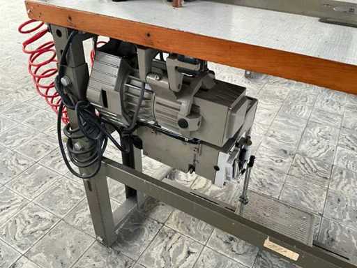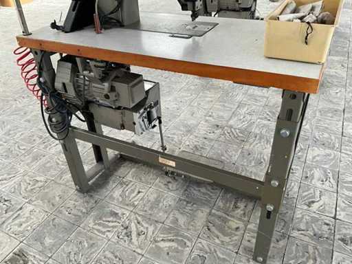 On metal base/table and equipped with foot pedal control and motor.