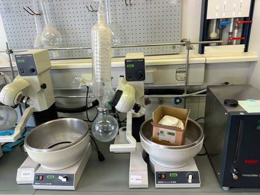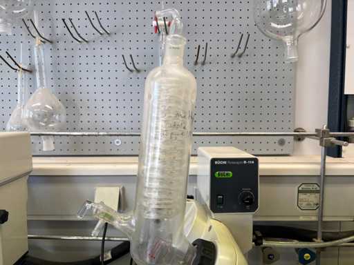 z kąpielą grzewczą Büchi B-480 (20-100°C, 1300 W) oraz kolbą o okrągłym dnie pojemności 1 L.