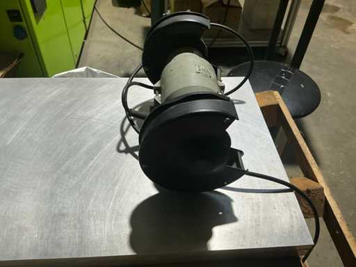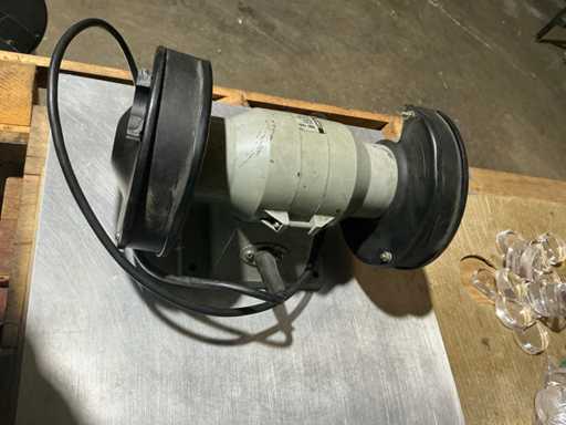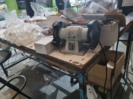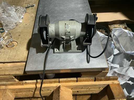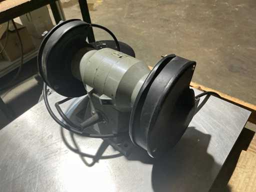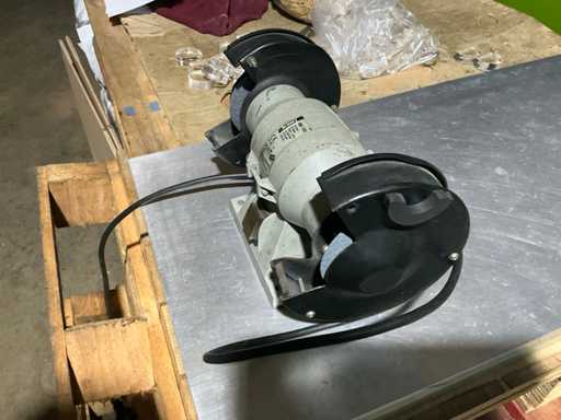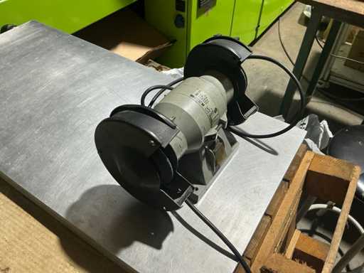 Szlifierka stołowa z dwoma tarczami szlifierskimi do ostrzenia i usuwania zadziorów narzędzi oraz drobnych komponentów.