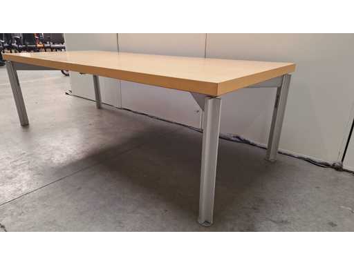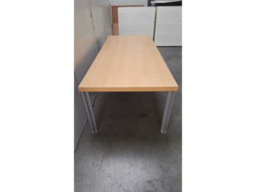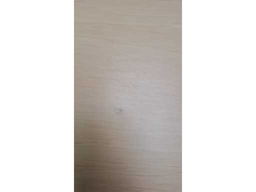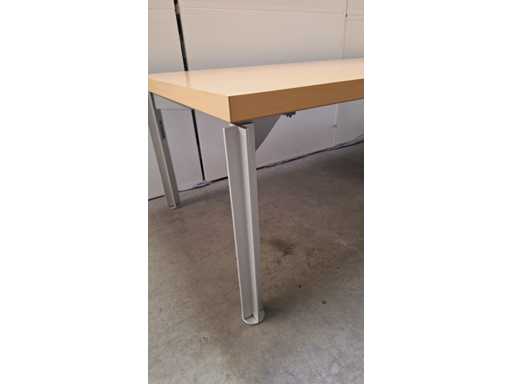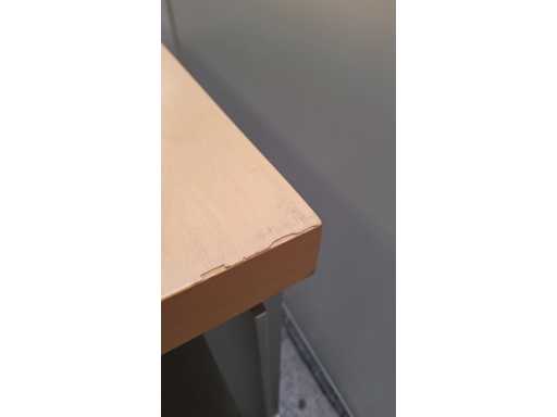 Lity dach wykończony dębowym fornirem, podstawa z aluminium regulowana wysokością, blat nosi oznaki zużycia (patrz zdjęcia)