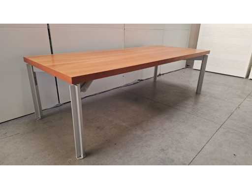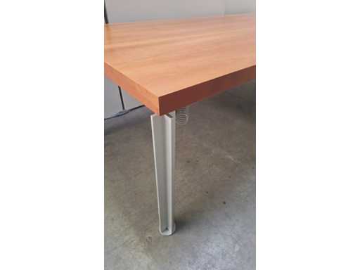 Solidna pokrywa wykończona fornirem wiśniowym, podstawa z aluminium regulowana wysokością, blat wykazuje lekkie ślady zużycia (zobacz zdjęcia)