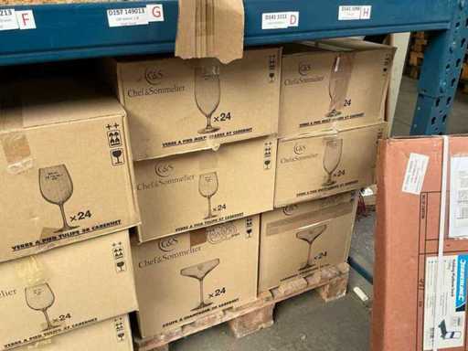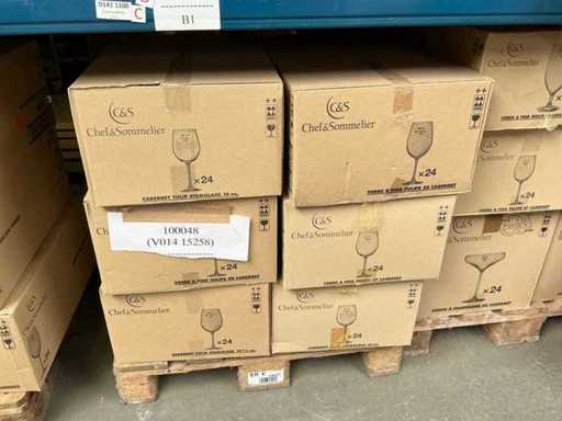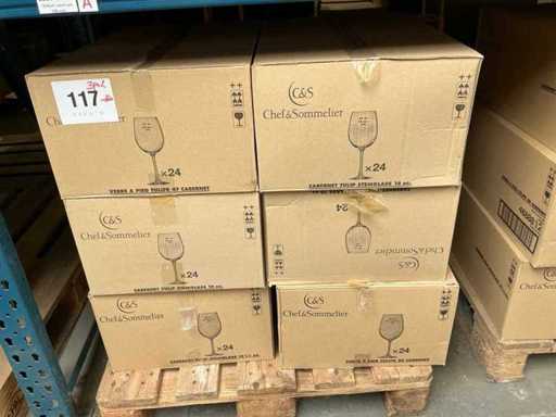 W tym 330x kieliszki do wina Cabernet Tulip 16oz, Tulipan 58 i Tulipan 19,5oz, 48x kieliszek do szampana 30 i 10oz oraz 72x kieliszek 47 Cabernet
