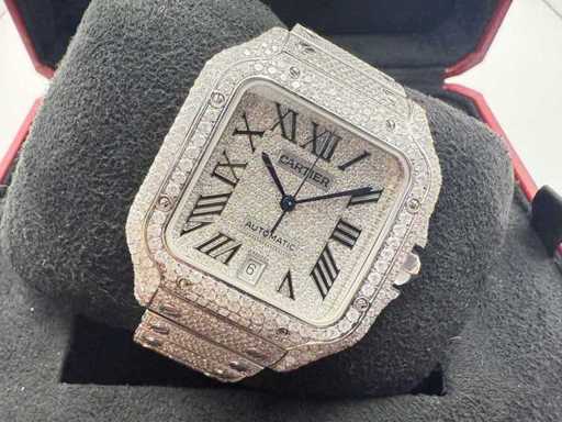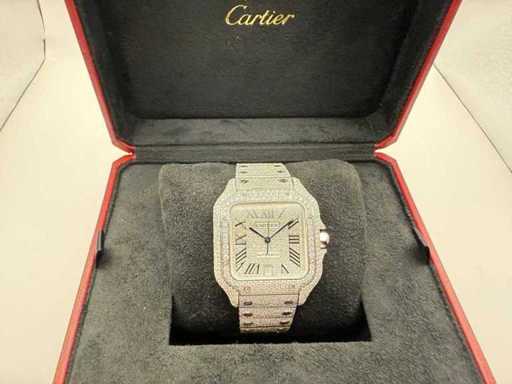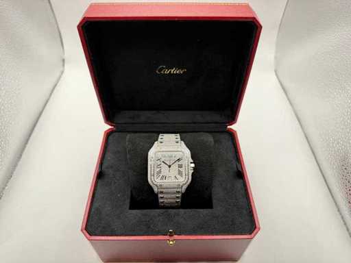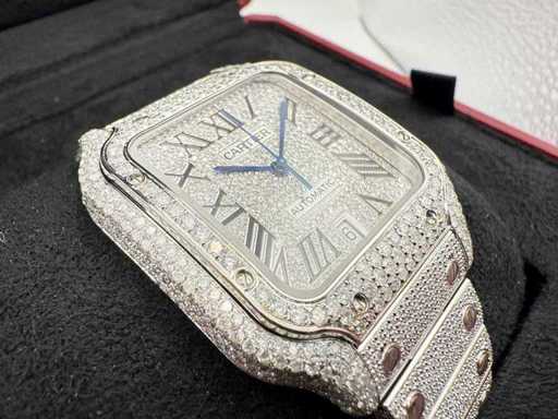 Cartier Santos | WSSA0018 | Stalowe diamenty Arabska tarcza | Pełne ICED z naturalnymi diamentami | 2024